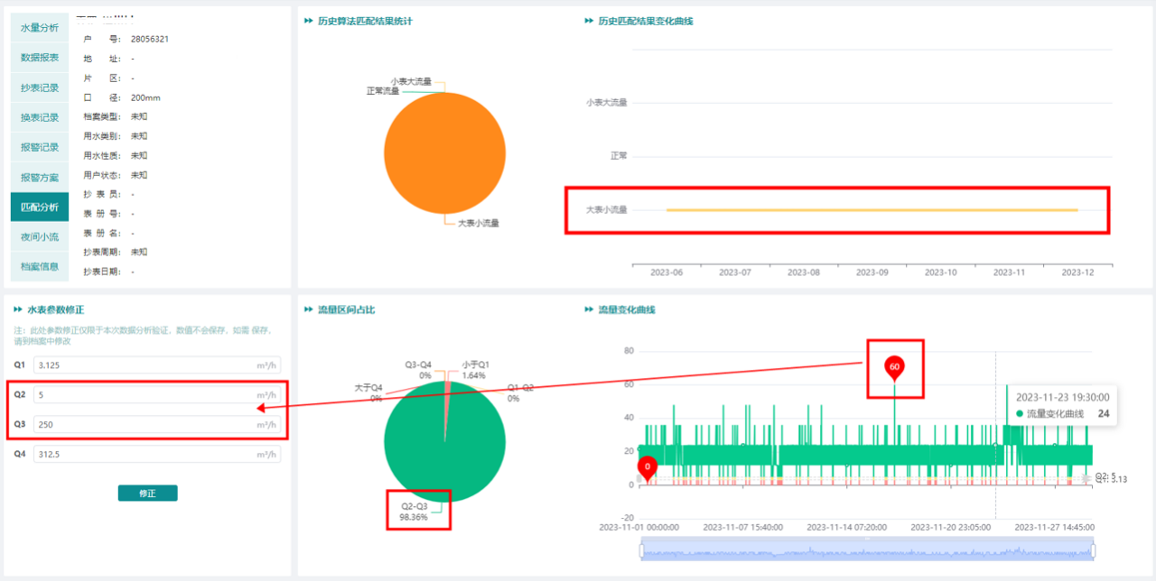 系統內置的計量診斷算法,專門用于精確識別和分析計量誤差。為供水企業提供了強大的工具,以全面了解計量問題及其原因,并評估由于這些誤差可能引起的經濟損失。基于診斷報告,供水企業可以制定出有效的改進策略,旨在減少經濟損失,提高計量準確性,優化運營效率。