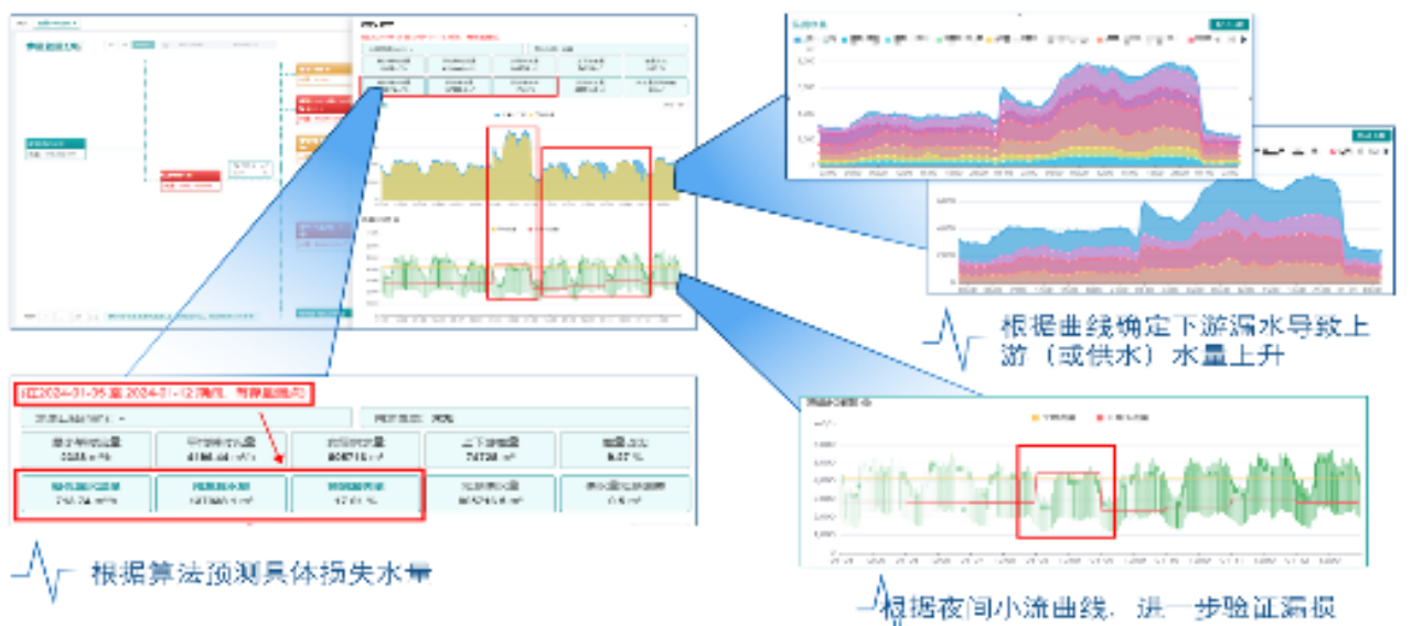 系統采用先進的水量漏失模型,專門針對物理漏失原因進行深入診斷分析,包括存量漏點和背景漏失等管網漏失問題。為供水企業提供數字化解決方案,以精確識別和輔助定位漏損點,助力實現更有效的水量控制和管網維護策略。